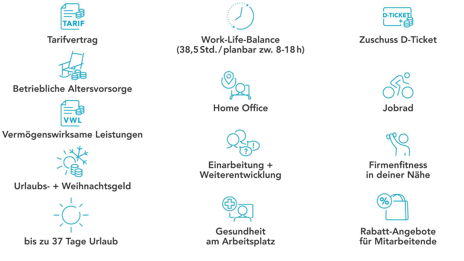 Tolle Benefits wie beispielsweise eine tarifliche Bezahlung mit Urlaubs- und Weihnachtsgeld, bis zu 37 Tagen Urlaub und bis zu drei Tage Home-Office. Ausführliche Informationen hierzu findest du auf karriere.hek.de/benefits.