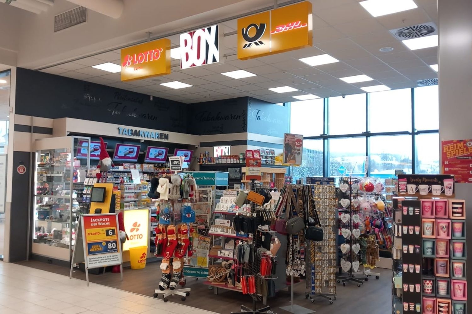 Unsere Lotto-Annahmestelle ist ein Teil einer erfolgreichen und stetig wachsenden Kette von Geschäften, die eine Vielzahl an Dienstleistungen und Produkten anbieten. Wir sind spezialisiert auf Lotto-Spiele, aber bieten auch Zeitschriften, Tabakwaren, Postdienstleistungen und DHL-Versand an.